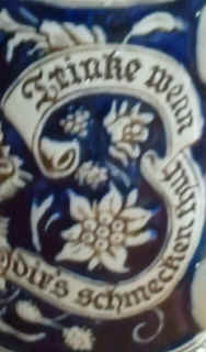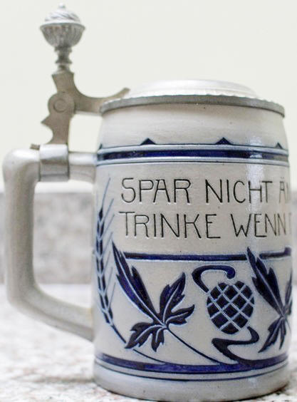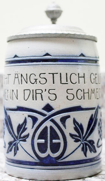 This verse can also be found on the Art Nouveau stoneware stein below made by Marzi & Remy (mold# 1845). | ||