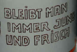 Steht das Krügel auf dem Tisch - Bleibt man immer jung und frisch. |