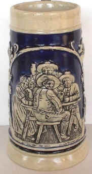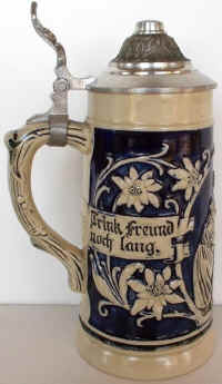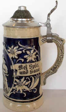 | The verse is happy-go-lucky on this relief stein marked "358 Made in Germany", ca. post WWII. | |