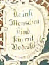 Trink Menschenkind fein mit Bedacht, was fröhlich dich und selig macht. |