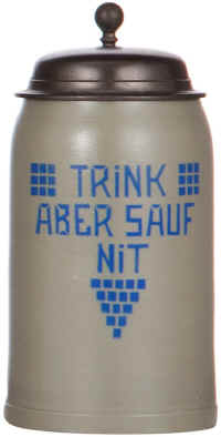 | This transfer verse is self explanatory on a Mettlach, stoneware stein marked "Bavaria" and mold number 1909, ca. early 1900's. | |