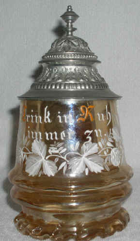 A good motto on a hand enameled glass stein ca. late 1800's.