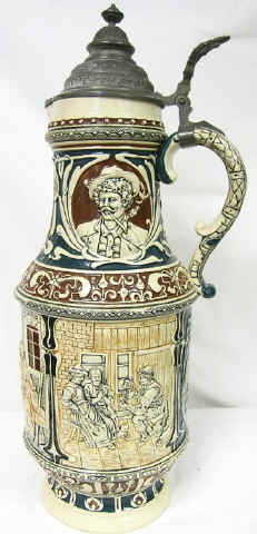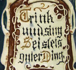 Good words to live by on this large relief pouring stein marked "524" ca. 1900. | |