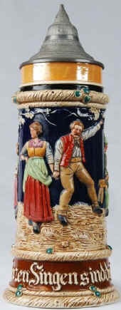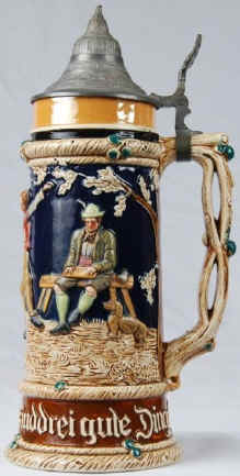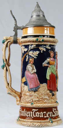 Who could argue with the self-explanatory verse on this relief stein by J. W. Remy, ca. early 1900's. | |