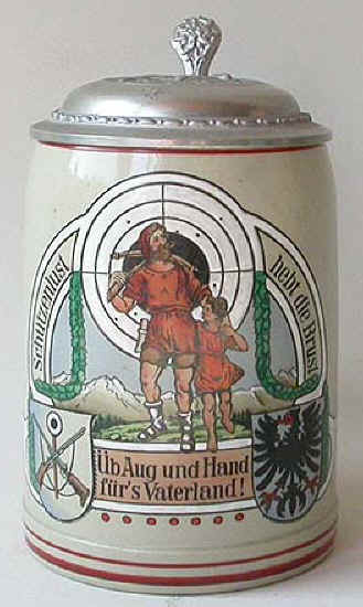 Train eye and hand for the fatherland! The joy of protecting lifts one's breast. (i.e., makes one proud) |