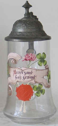 This is like "Happy go lucky!" on this glass stein ca. 1900.