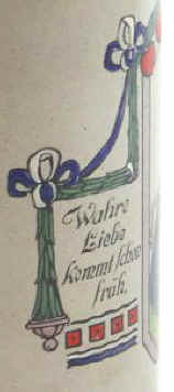 | This is a nice sentiment on this Jugendstil (youth style = modern art) stein, ca. early 1900's. | |