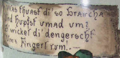 Was thuast di' so braucha Und hupfst umad um? E' wickel di dengerschf Um's Fingerl rum! |