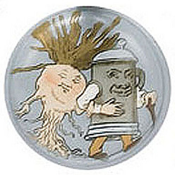 However there can be a downside to this that was written about by the famous 16th Century poet, Hans Sachs. He referred to this place as the more down to earth "Schlaraffenland" (place for debauchery and its consequences, which happens to be the other nickname for this stein). Some old German student drinking songs have this theme and corresponding verses. | |