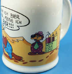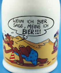 | This thirsty desert animal isn't going to settle for wine, cola or lemonade when he wants a real beer on this modern stein without lid, ca. early 2000's. | |