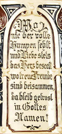 Wo nie der volle Humpen fehlt und Liebe stets das Herz beseelt, wo treue Freunde sind beisammen, da bleibt getrost in Gottes Namen! |