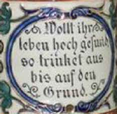 Wollt ihr leben hoch gesund, so trinkt aus bis auf den Grund. |