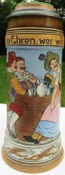 Here is an etched stein #1726 by Reinhold Hanke, ca. 1900, designed by Rudy Dekker with "R inside of D" mark (see: Chris Wheeler's "Stein Marks"). The message is clear. | |