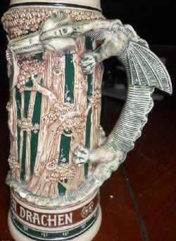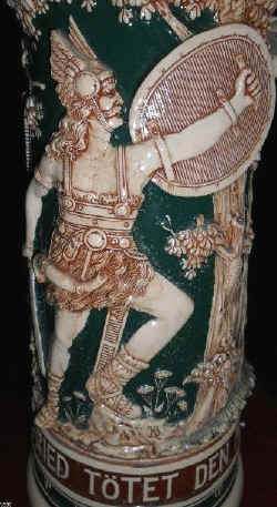 This is a magnificent large relief stein with a scene of Sigfried slaying the dragon from