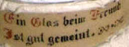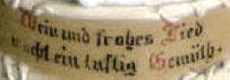 | This verse is also found on this cute salt-glazed stoneware stein ca. 1900 by Dümler & Breiden, mold# 23. For some reason, Mäßig is spelled with only one "s". | ||