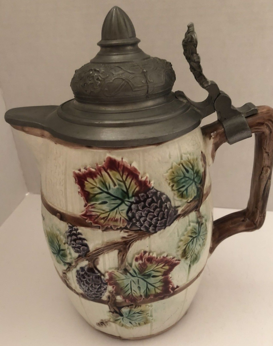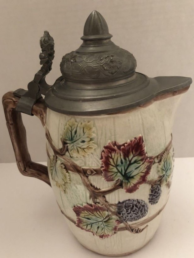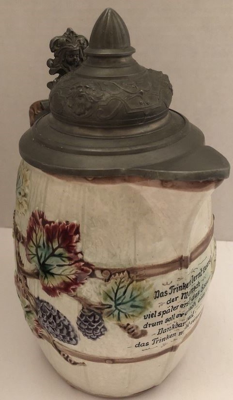 This pottery, barrel shaped, pouring stein appears to have been made ca. 1900. | |