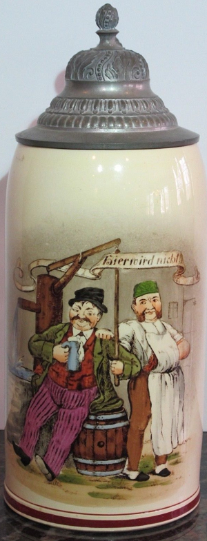 It seems like I've heard this toast more than a few times in English. The earthenware stein is by Gebrüder Dorfner ca. 1900 (see: Chris Wheeler's "Stein Marks" website.) | |