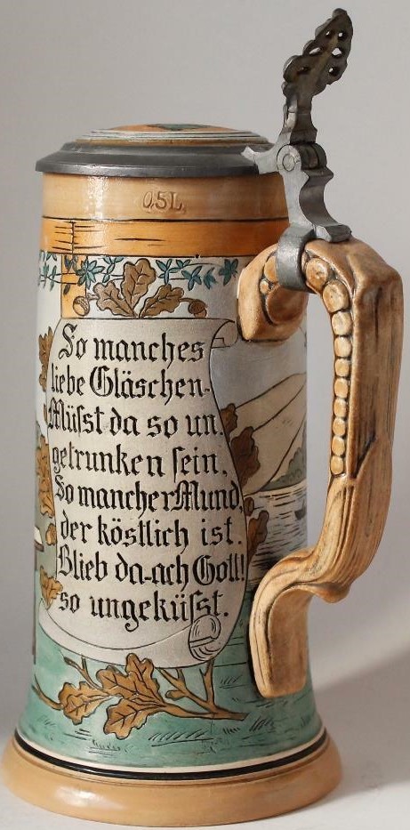 This etched J.W. Remy stein #1218 ca. 1900 has a verse lamenting how many things go unused that could bring pleasure if put to the proper use. The text is taken from a poem entitled “Lied des Wanderburschen im Wald” (Song of the Traveling Journeymen in the Forest), written in 1862 by Karl Gärtner. | |