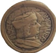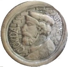 This interesting low relief stein has an academic, philosophical verse and portraits of four Renaissance artists. The text accompanying the artists are somewhat disjointed, but are for Raphael Santi, Luca Della Robbia, Martin Schongauer and Giovanni da Udine. The stein maker is unidentified, but ca. late 1800's. | |