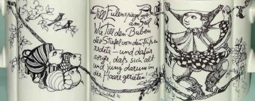 Till was born under a special star. While still a baby he developed a prankster's talent and wit. After his father died, he and his mother were poor as churchmice, so his mother encouraged him to take up a profession. But Till wanted to be free as a bird. He wasn't lazy, though. He practiced tricks and acrobatics in their attic. He could walk miles on his hands, tie his legs in knots over his head, recite tongue twisters endlessly without stumbling. And he taught himself to walk a tightrope. But his mother disapproved. One day, when Till had tied a rope between two houses over the river Saale and was practicing his art to the wonderment of the townsfolk who had come to see him, his mother cut the rope so that Till fell into the river. He didn't hurt himself but his pride was wounded by the laughter of the townspeople who called to him: "We always knew you were still wet behind the ears. Now you can wash your head of all your silly tricks and schemes."