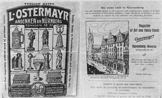 L. Ostermayr - This Nuremberg firm is a seller of fine gift wares and souvenirs, including ceramic and metal items. They are still located at K�ningstrasse 35-37, but only occupy 1/3 of the building. See an old L. Ostermayr brochure HERE. |