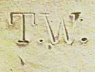 P.W. - Unidentified finishing shop, possibly Peter Willems. This mark is seen only rarely. The illustrated mark was found on a Marzi-Remy stein. |