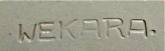 Wekara - WEKARA stands for Wilhelm E. Krumeich aus Ransbach (WEKARA) The firm operated from 1845 to ca.1978. References disagree on the closing date, some say 1910 and others 1978. There are some inexpensive "souvenir" steins marked WEKARA that are definitely post WWII. They purchased steins from many sources with their mark applied and were one of the very few finishing shops that purchased steins from Mettlach other than 1526 and 1909 blanks. Another was Friedrich van Hauten of Bonn |