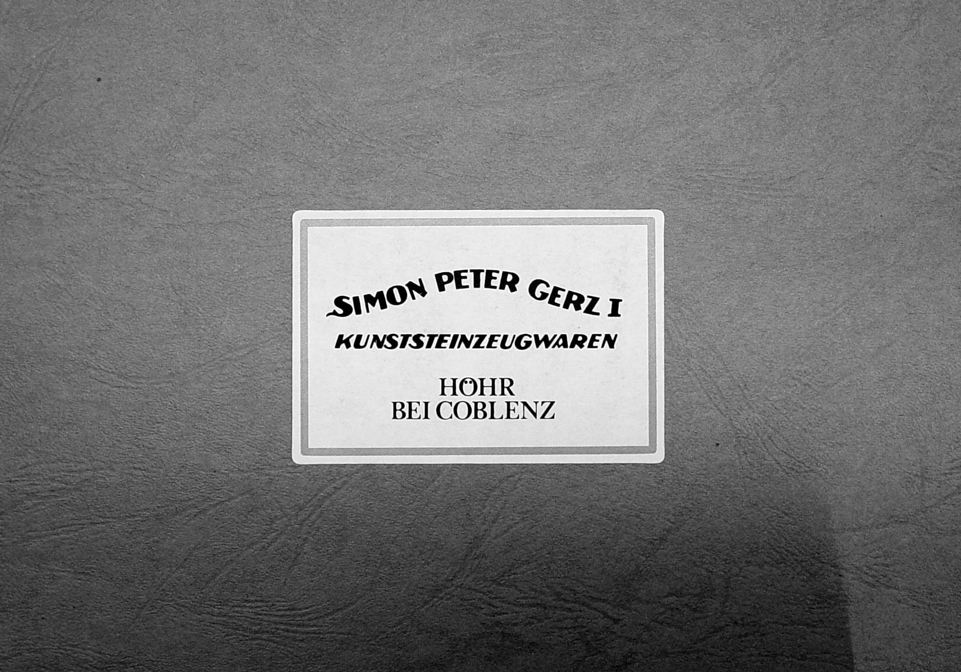 Simon Peter Gerz I was born in 1830 and founded his stoneware company in 1857 in the village of Höhr, likely based on an existing family pottery business that dated back as far as 1810. He finally received its license to produce in 1862. Simon Peter Gerz I, died in 1893 and was succeeded by his son-in-law Alphons Wilhelm Lötschert (1863 - 1945). The company became a G.m.b.H. (corporation) in 1897. The company's products were distributed as well through the Steinzeugwerke Höhr Grenzhausen Gmbh marketing organization from 1912-1914. The original company continued operations until 1997. (There was another Simon Peter Gerz (b.1833, d.1908, in Höhr, who used the suffix "II" to differentiate himself from S.P.G. I. He was father of Alois Jacob Gerz of Roßkopf und Gerz.)