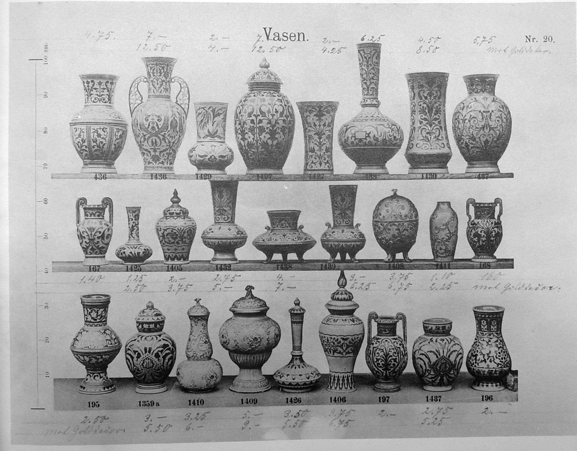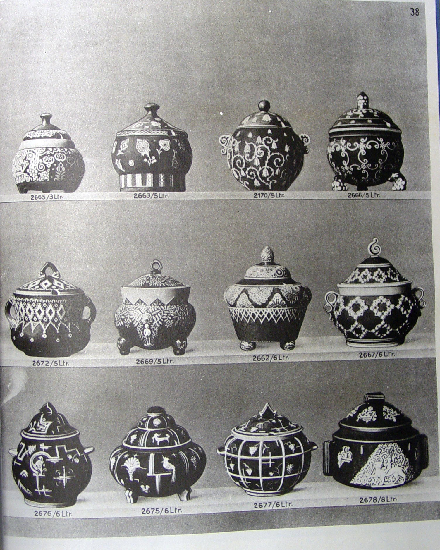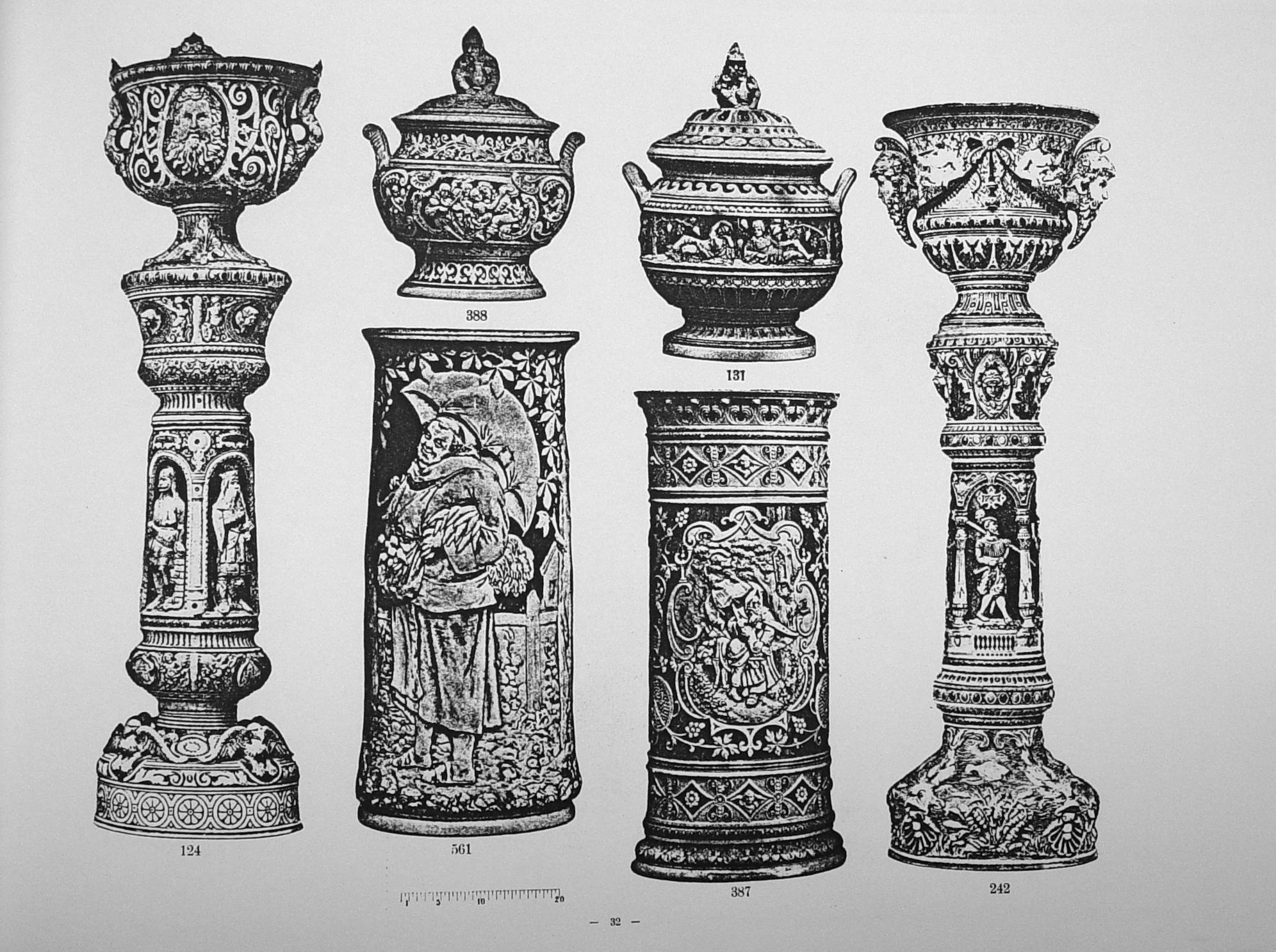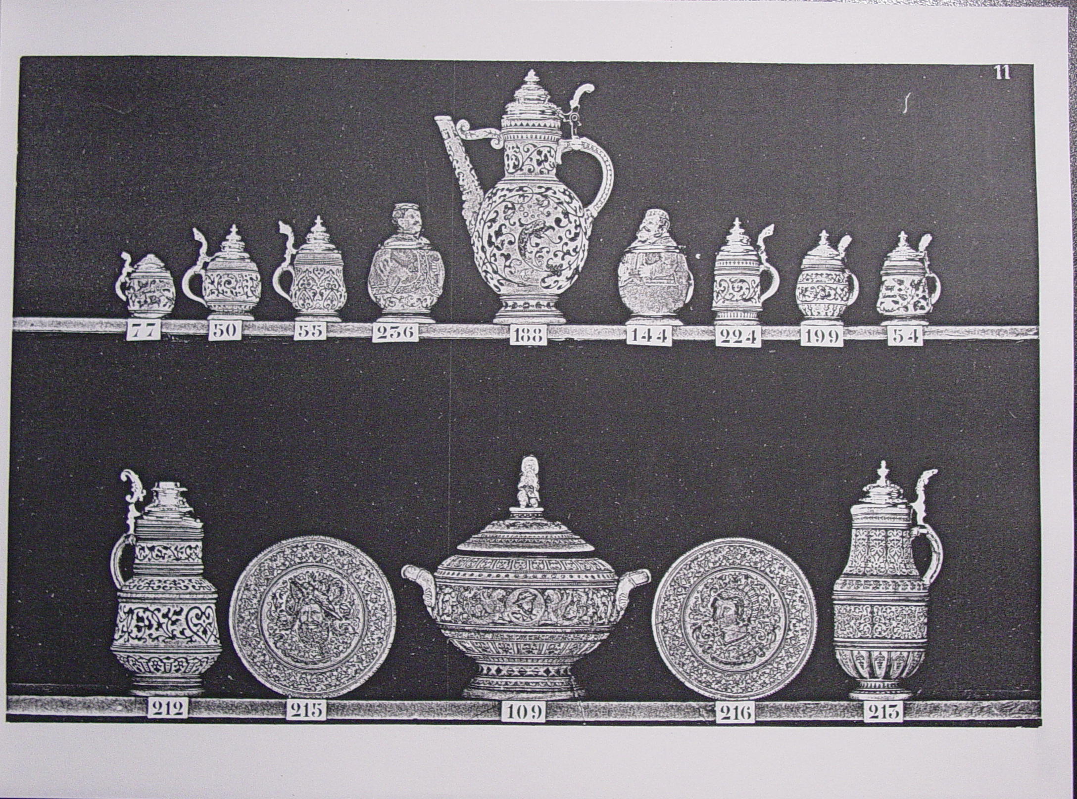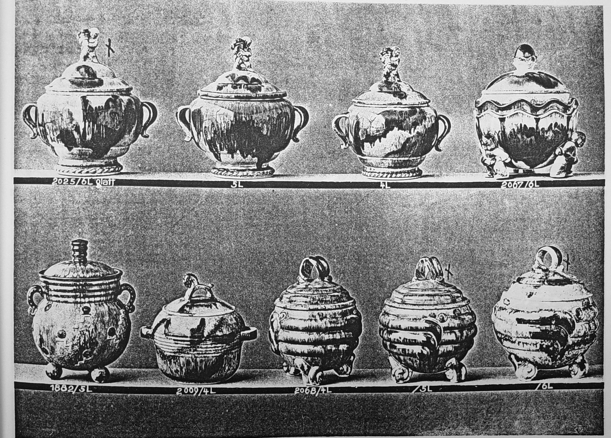 Who made this stein? Using available original manufacturers catalogs, this page allows you to look up possible answers to that question. Mold numbers beginning with 1 and ranging into the thousands appear in the first column below. For each mold number, the manufacturers who produced an item with that number are listed, along with a link to an original catalog page showing that item. Scroll down to the mold number in question, then examine the catalog pages to confirm the manufacturer of your stein.