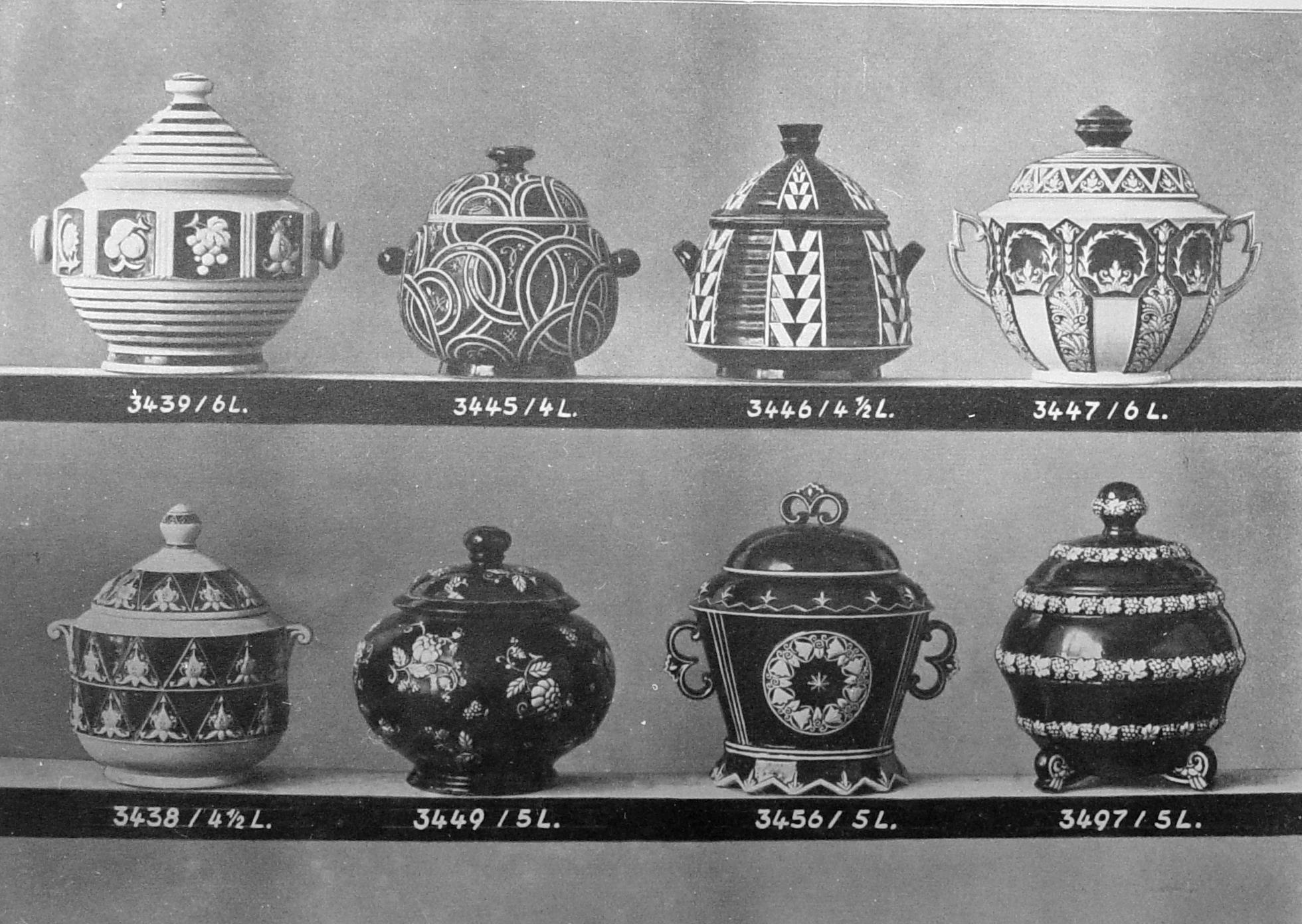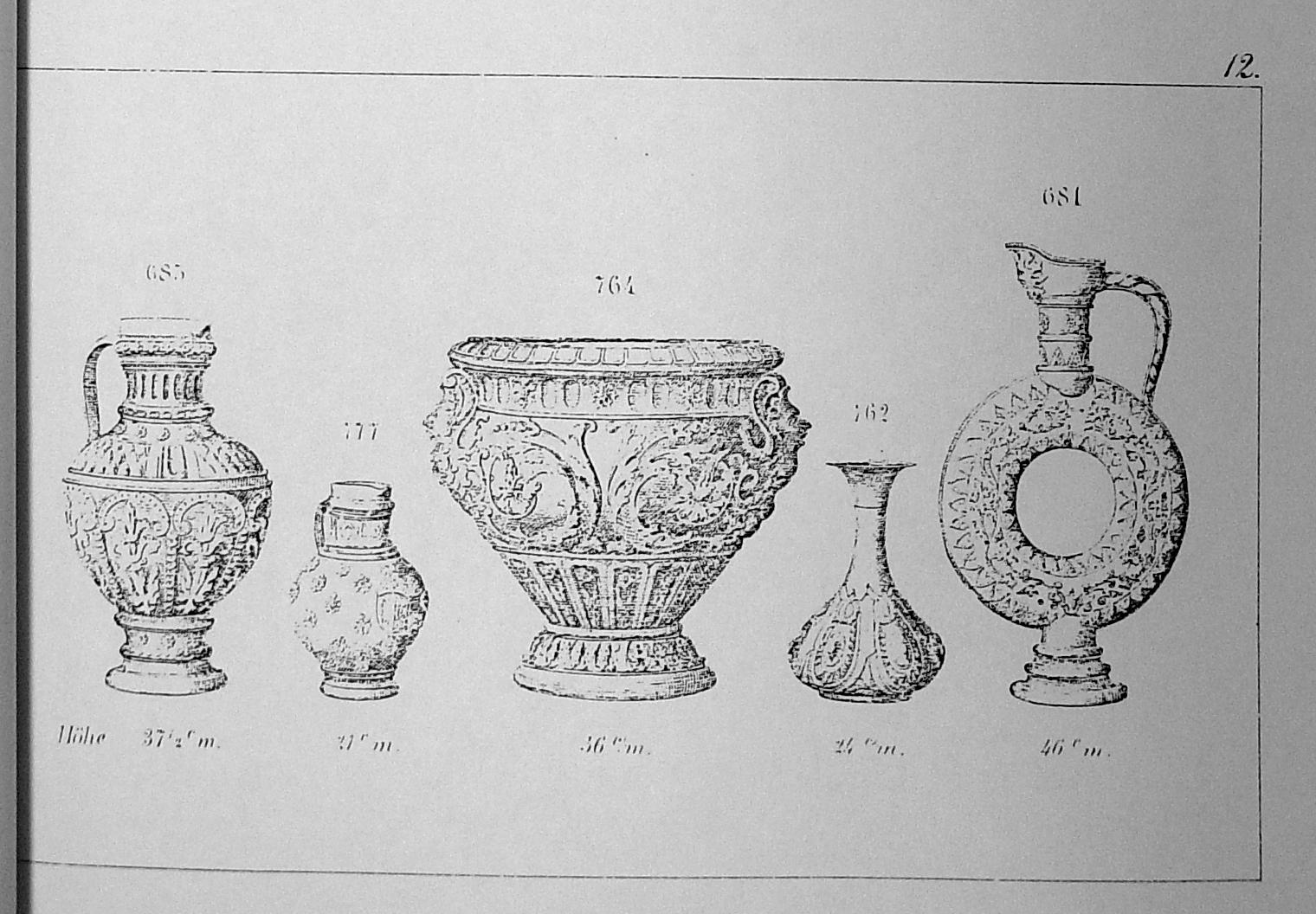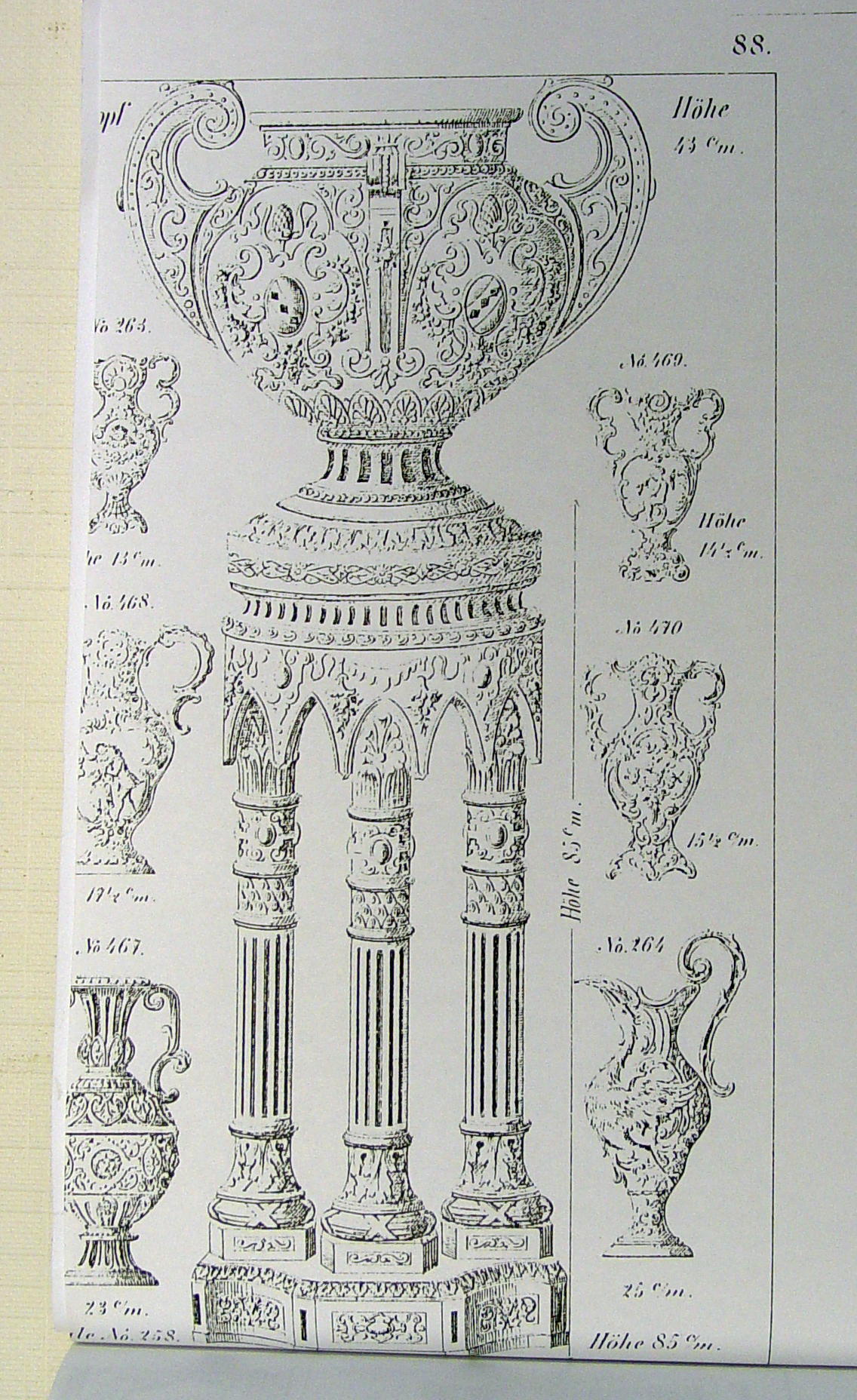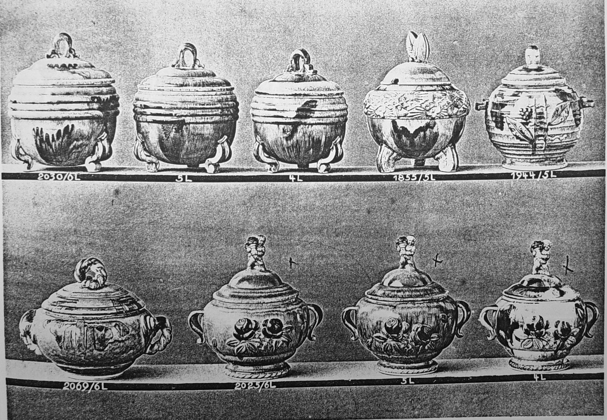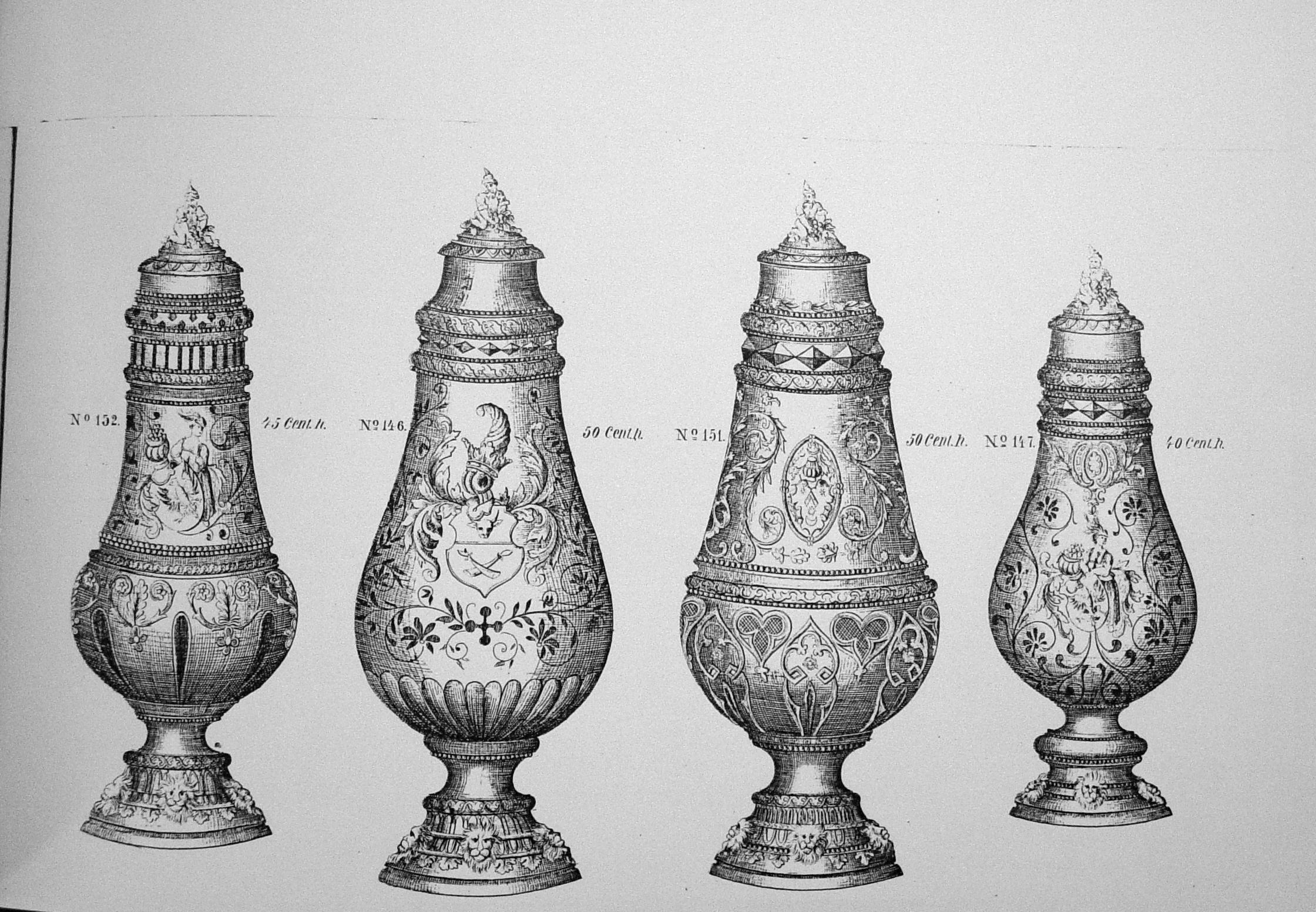 Who made this stein? Using available original manufacturers catalogs, this page allows you to look up possible answers to that question. Mold numbers beginning with 1 and ranging into the thousands appear in the first column below. For each mold number, the manufacturers who produced an item with that number are listed, along with a link to an original catalog page showing that item. Scroll down to the mold number in question, then examine the catalog pages to confirm the manufacturer of your stein.