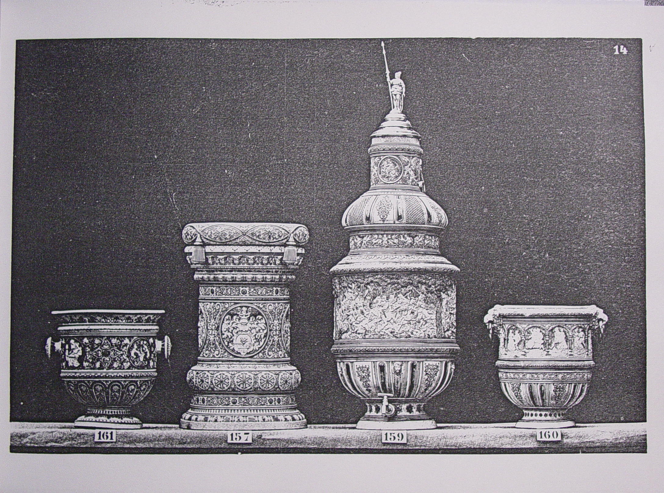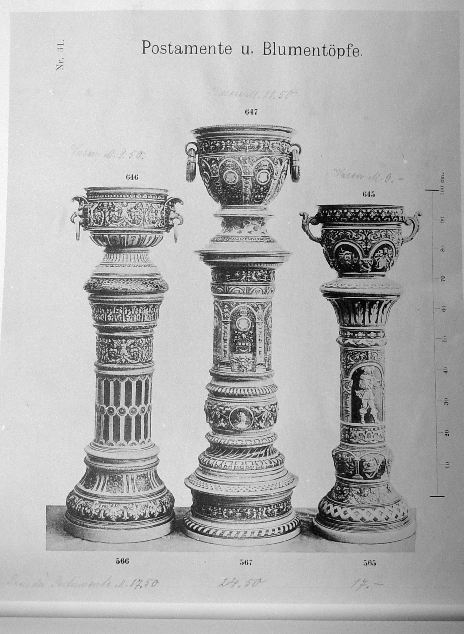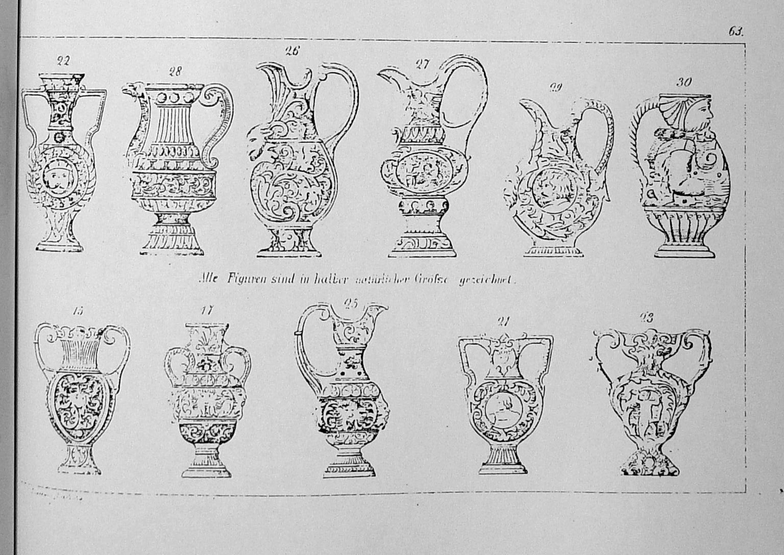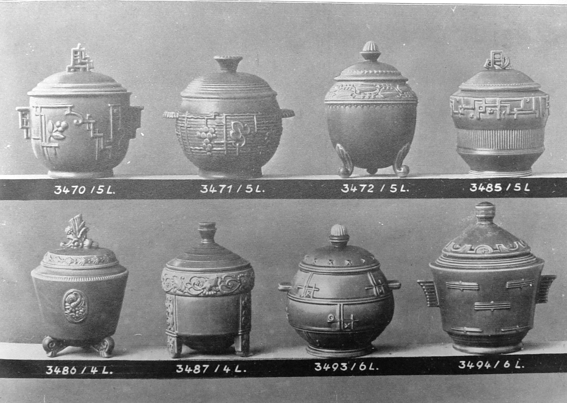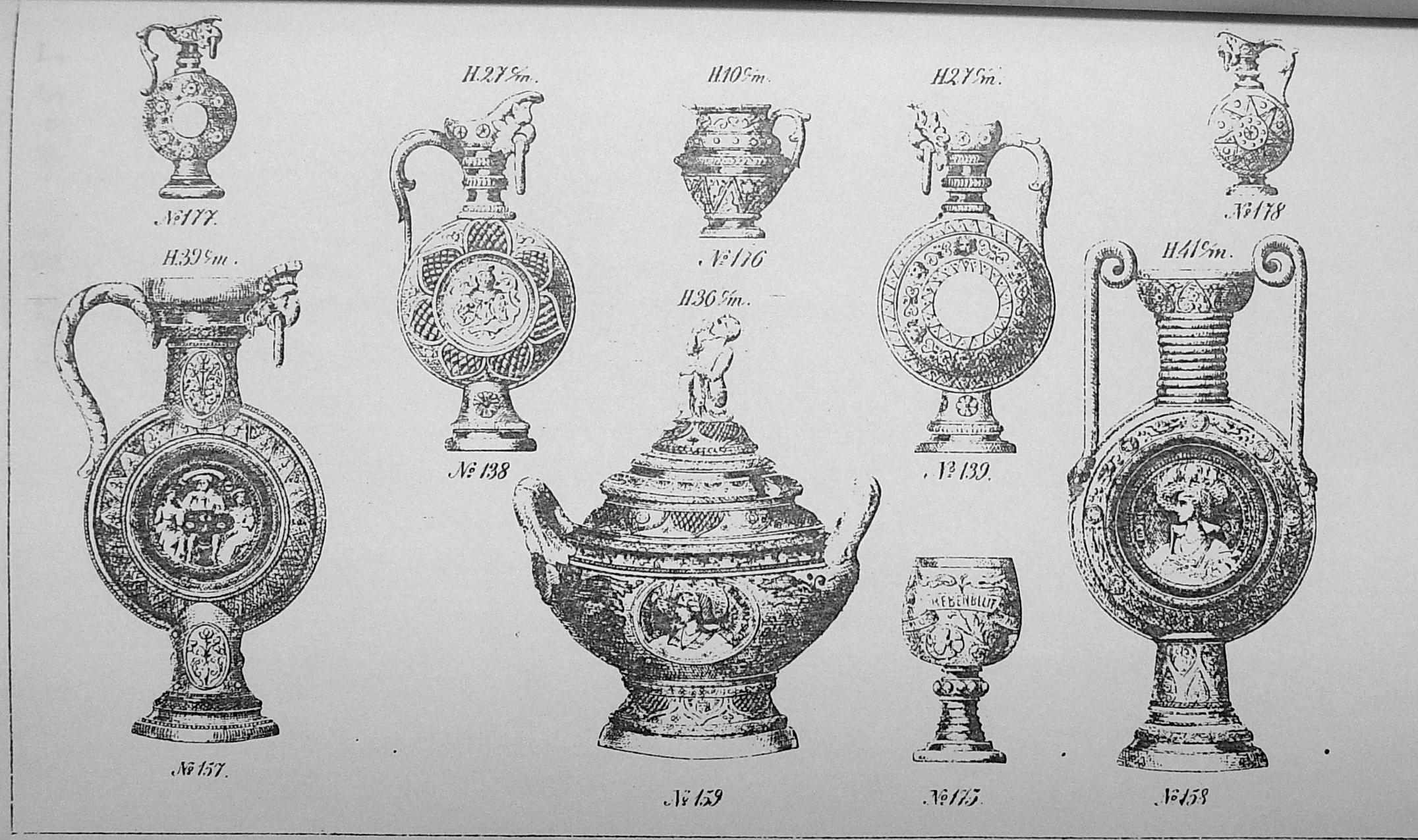 Who made this stein? Using available original manufacturers catalogs, this page allows you to look up possible answers to that question. Mold numbers beginning with 1 and ranging into the thousands appear in the first column below. For each mold number, the manufacturers who produced an item with that number are listed, along with a link to an original catalog page showing that item. Scroll down to the mold number in question, then examine the catalog pages to confirm the manufacturer of your stein.