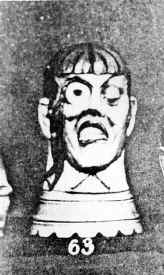 Since the majority of character stein production occurred prior to 1899, the first mark, i.e., tic-tac-toe, is the one we most often come across. The triple oak leaf mark has not been spotted on any stein, but the leaves in the frame and crown were seen on the "Missing Link" monkey head stein written about in the previous article (September 1986). It has also turned up on the innkeeper (CS-M1-7) and on a skull-on-book (CS-SK9-10). It is my opinion that Schierholz tried to revive the character line after 1910, but, as all stein manufacturers found out, the demand was no longer there. They then expanded into other items. Very often these steins carry the word "Musterschutz", usually in green, stamped onto the base over the glaze. This word in reality simply means "copyrighted" or "patent-protected" and has absolutely no bearing on the manufacturer. But even though collectors knew this fact, the characters were called "Musterschutz steins" for want of a better name. Sometimes this mark appeared along with the tic-tac-toe mark, sometimes it was the only mark on the stein's base, and sometimes there was no mark at all. No matter how they are marked, the characteristics of these steins make them unmistakably different from other steins! On occasion we find hand-written numbers on the base, in the same color as the decoration. It is believed that this number referred to the bench number and was used as a quality control to identify the decorator. The porcelain stein lid might also carry this number if also decorated by the same artist. But frequently the lid was decorated by a different artist and in such a case the lid number would differ from the base number. It is not uncommon to find different shading on a stein lid and base, only to also find different bench identification numbers. On rare occasions an incised number can be found on the stein base, generally near the handle side. This was meant to correspond to the mold number found in the catalog, but it often differed. l will explain why when we discuss the catalog pages. Although other marks were used later, these are the only marks usually found on Schierholz character steins. The tic-tac-toe mark became synonymous with these great quality figural steins, so it would naturally follow that other factories would try to duplicate this mark on newer character steins. The Drunken Monkey (ECS-39) and the Bismarck head (ECS-134), both original Schierholz designs, along with the Hunter Rabbit (ECS-64) and Heidelberg Student (ECS-190), which were not Schierholz designs, have been produced after World War II. These four porcelain steins carry a black or dark blue tic-tac-toe mark in an attempt to copy the Schierholz pieces of the 1890's. These are overglaze marks and do not match the under-glaze pocked characteristics of the original, nor do the steins themselves match the quality of their 1890's counterparts. Catalog Pages With the help of Werner Sahm, l have recently been able to uncover five original Schierholz catalog pages that not only show most of the known character steins attributed to them, but also some that we have never come across. One such example is catalog number 107, which is a stag wearing a monocle and with a ribbon around his neck. Another, which is on a page not clear enough to reproduce, shows a head of Ludwig II with a spiked helmet. There are at least three others, but they are unrecognizable. Variations that we haven't seen before also show up on these pages: Many of the figurals were made on pedestal music box bases. Some we have alreadv encountered, but others, such as the School Teacher (ECS-268), the Heidelberg Student (ECS-269), the Drunken Monkey (ECS-66), and even the Bowling Pin (ECS-79), show up on the catalog pages. As the catalog pages show duplicate items it is evident that they were issued at different times. l am certain that many more catalog pages were printed, as many known Schierholz steins do not appear on these five. Each stein has a number which appears to identify the piece. But in studying the actual steins that carry numbers, most do not correspond to the catalog numbers. Note that the Happy Radish appears as #5 on page 72, while the Sad Radish is #8. These same two steins appear on another page, with the numbers reversed. It is my opinion that these steins were probably known by their names - due to the easily recognizable shape - rather than by numbers. The catalog numbers remain the same on steins even when their size changes or when a lid variation occurs, such as #24, Wilhelm II, either with a spiked helmet or with the eagle-topped helmet. The number stays the same even though the stein appears on a pedestal base. However, in the case of Father Jahn the number changes when a cap is added (see 40 & 41, catalog page 71). In the list of numbers there are many blanks which could represent other pieces that Schierholz made at that time, or possibly there were other steins that we are not yet aware of. These missing numbers remain a mystery at this time. Please note: A complete list of the Schierholz character steins, with catalog number and ECS identification, will appear in the March issue of Prosit, when part 3 of this series appears. Below, page number 71 from the original Schierholz catalog. It is curious that there is only one non-character stein on these pages, #114, which depicts relief dancing girls (see middle of the bottom row).