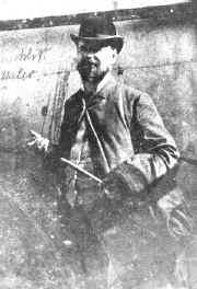 face in the glaring sun, wearing a derby hat, with the usual cigar in his right