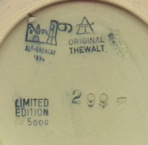 This lengthy article was assembled by Walt Vogdes, much of it from previously published sources. Stein collectors are indebted to Roland Henschen for identifying the correct ownership of the TP mark (which really does deserve a better name), and for his diligent research into the various Thewalt firms (among others). Thanks are also due to Albert Jacob Thewalt for his review and comments on this article. The speculation about the meaning of the dot in trademarks was jointly developed by Walt Vogdes and John McGregor, and if it turns out to be total foolishness, then we will be the fools.