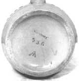 Another Stein Illustrating the Firm of Paulus & Thewalt by Jerry Berg and Walt Vogdes Take a look at the stein pictured below, courtesy of Jerry Berg. (Click anywhere in the images to see a more detailed view of the side and center scenes.) ![]() "Zur freundl. Erinnerung an den Besuch bei der Firma des Paulus & Thewalt Höhr 1902". "In friendly remembrance of a visit to the Firm of Paulus & Thewalt Höhr 1902." It would appear that this stein was ordered in 1902 from the firm of Albert Jac. Thewalt by Paulus & Thewalt, and it was likely a keepsake given to special visitors, perhaps in celebration of the anniversary of the firm. This decoration of the stein confirms that Paulus & Thewalt specialized in producing stoneware items for the medical and pharmaceutical industry. The side scenes show a chalice with an entwined snake, symbols of the medical potion, while the center scene is in a laboratory or classroom setting. The marks on the base of this stein are shown to the right.