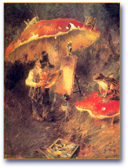 Heinrich Schlitt, one of the most popular Mettlach artists of all time, loved portraying these wonderful creatures on steins. He painted in oils and produced artwork for postcards as well. Professor J.A. Schmoll described Heinrich as the "Walt Disney of the 19th Century." He, among many other German artists in a multitude of companies, have helped to "capture" the Heinzelmännchen for future generations to enjoy.