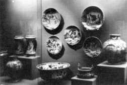 Part 1. A General Presentation [Note: Part 1 provides an introduction to the Museum, while Parts 2 and 3 focus on early porcelain steins in the collection.] In the heart of the cultural area of Toronto, next to the gorgeous Royal Ontario Museum, you will find the George R. Gardiner Museum of Ceramic Art. You have to look carefully before you can find it, because the outside doesn't give a hint of what you will see inside. Although the building seems small and has a simple facade, the showrooms inside display a lot of treasures, surpassing all expectations. The ceramic collection of George and Helen Gardiner was made available to the public in 1984; the owners wanted "to share with Canadians, friends and people from all over the world one of our great loves - our ceramic collection" (ref. 1). A new building was designed for this purpose by architect Keith Wagland: this process had greater advantages and more possibilities than using an already existing or even historical building. As soon as you enter the museum, you realize that it was built especially to display this collection of ceramics and that all experiences of "museology" have been observed. The result is a perfect museum! The way the different types of items are shown is really fascinating; this is my very personal feeling and I am sure that every visitor to the Museum will understand me. I saw wonderful cabinets and showcases that looked like shrines for precious jewels: Lined with velvet of different colors exactly corresponding to the type of item displayed. The descriptive labels are excellent, very informative, exact, abundant and discrete. The result is a work of art to emphasize many smaller works of art. The efforts necessary to get a complete collection of silver, paintings, glass, ceramics, or whatever you collect, are certainly known to our readers, who are collectors themselves. Sooner or later one reaches a point where a decision has to be made concerning the direction in which the collection is to be continued and increased. George and Helen Gardiner did not attempt to tell the long and complex development of ceramics throughout the world in its entirety. When they had to make up their mind, they decided to concentrate their collection on certain time periods and particular materials, even on specific geographical areas. If a collection is divided between two floors of a museum, it doesn't automatically mean that you will be viewing two separate portions of the collection; but in this museum it is indeed so. The division into the two parts matches the ceramic classifications of "pottery" and "porcelain." Pottery is a generic term for all ceramic wares without exception, but generally it is used for all wares that are not porcelain. [Editor's note: we are attempting to obtain better illustrations for these articles.]