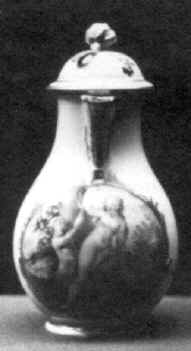 The first European country represented in pottery is Italy. The oldest items date back to the 13th century, but the main part of the Gardiner collection covers the 15th and 16th centuries with the famous ceramics called majolica (fig. 1). England is also represented with majolica, but called Delftware in the middle of the 18th century, because there was a big resemblance to the tin-glazed earthenware items made in the Dutch city of Delft. In contrast to the colorful but strictly decorative items from Italy, the English majolica or Delftware was put to daily use. In the history of ceramics, the 18th century meant the beginning of a new era. The upper floor of the Museum is dedicated entirely to European porcelain. The first European hard-paste porcelain was made in 1710 by Johann Friedrich Boettger in Meissen, after much experimentation to discover the secret of oriental porcelain, known to the Chinese people since the 7th or 8th centuries A.D. Even though the ruling royalty of Meissen tried to guard this great secret, it passed rapidly to other ceramic centers. A factory started in Venice, Italy; the Dutchman Du Paquier set up competition in Vienna, Austria; and after a period of only a few years, porcelain was being produced throughout Europe. The Gardiner collection presents items from the various factories of the 18th and 19th centuries. Besides the well-known factories, the visitor also finds the names of smaller ones that produced the "white gold." Meissen, Germany (fig. 2) and Sèvres, France (fig. 3), are the most famous factory cities which have their wares on display, but there is also Vienna, as represented by the Du Paquier factory. France is represented by Vincennes, Saint-Cloud, Chantilly and Memmecy. English examples come from Chelsea, the "Girl-in-a-Swing" factory, Lund's Bristol, Worcester, Plymouth, Bristol, Derby, Pinxton and Mansfield. German factories are Berlin, Frankenthal, Fulda, Fürstenberg, Höchst, Kelsterbach, Nymphenburg and Ludwigsburg, as well as Otweiler: Ottweiler has been relatively unknown for a long time, and I was surprised to see a milk pitcher (fig. 4) from this factory, especially since Ottweiler porcelain is so very exceptional. The city is located in the Saar area, originally in the county of Saarbrücken. The factory was founded in 1764 by Earl Wilhelm Heinrich, but production ceased after 30 years. I was impressed not only by the large number of Meissen porcelain pieces, but also by their quality: Very precious treasures in their individual shrines. Another surprise was the number and variety, as well as the display, of the "Commecia dell'Arte" figurines (fig. 5a and 5b), mostly 18th century, from a number of different German, French, English and Italian factories: Meissen, Vienna, Sèvres, Saint-Cloud, Chantilly, Chelsea, Worcester, Derby and Venice. Though I would certainly like to do so, I cannot present the entire collection to our readers, not even the most beautiful ceramics of each department. The Museum does have a very good 72-page catalog, with many color prints, several in large format, at a very reasonable price. In further articles in this series, Ms. Adler will describe the porcelain steins displayed on the upper floor of the Museum; Part 2 covering the steins and tankards of the Meissen factory, and Part 3 dealing with those from Vienna and Ludwigsburg. References (reference are numbered sequentially through all three articles):