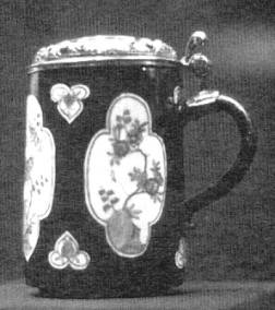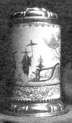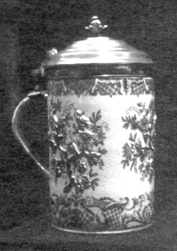 Part 3. German Porcelain Steins of the 18th Century: Vienna and Ludwigsburg In concluding this series about the Gardiner Collection in Toronto, we have to write about two major factories, the one in Vienna, the other in Ludwigsburg. Their story will be told in the context of their wares being represented in the permanent exhibits of the Canadian museum. Vienna, Du Paquier (1718-1744) or, respectively, the Imperial and Royal Aerial Porcelain Factory (1744-1864) The secret of making porcelain was not preserved at Meissen for any length of time! The Royal Vienna factory was the second one in Europe to obtain that secret: It was brought there by intrigue and the enticement of Meissen workers. When the Turkish threat to Vienna was eliminated at the beginning of the 18th century, a new artistic development spread through the city. The focus was not only on the traditional fields such as architecture, sculpture and painting, but also on that wonderful new material, porcelain. It is told that Claudius Innocentius Du Paquier (ref. 4), an imperial and royal war-agent, was able to establish the factory in 1718 with the help of two deserters from Meissen. Du Paquier's first attempts at producing a porcelain-like material date from 1716, but those were unsuccessful. In 1717 he hired Christoph Conrad Hunger (ref. 5) from Meissen. Hunger claimed he was privy to the secret: Boettger, while drunk, had supposedly told him the details of how to make porcelain. With the help of Mr. Hunger's knowledge of porcelain production, Du Paquier succeeded in making several samples of real hard-paste porcelain in 1718. After that, Emperor Karl VI, by means of an official privilege dated May 27, 1718, permitted Du Paquier for a 25-year period to produce "porcelain majolica and Indian tablewares, vessels and pots, such as made in East India and other foreign lands" (ref 6). The second worker from Meissen was the kiln specialist Samuel Stölzel, who fled to Vienna in 1719 - although he was considered to be one of the best workers at the Meissen factory.