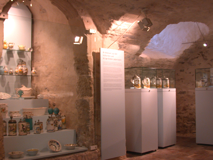 Being a long-time lover of faience pottery, I was more than happy to be able to make a special stop in Crailsheim during our recent trip to Europe. Funny how we get things set in our mind as to how things "should be" and get a real shock when we see how things "really are." I had thought that Crailsheim would be a small, but lively, town filled with little stores that sold pottery and such. Yes it was small, but where were the people bustling to and fro? The town was almost devoid of life. My husband stepped into a few shops to inquire if there might be any place to see some faience pottery. Finally, one man suggested that we stop by a small museum located on the outskirts of town. We stopped by the museum - it was closed. Thankfully, a woman who was helping other folks set up a modern art exhibit in the main hall of this tiny old building, said that we could have a look around. There were a few pieces of faience tucked in small alcoves upstairs and some in the basement. Even though there wasn't much to see, what was sitting there was quite nice. It was more than a bit amusing for the locals who were watching us. Guess it was strange to see long-distance travelers who really wanted to see antique art of their region. We are truly thankful for the kindness shown to us in letting us view their Crailsheim faience. Seeing the real thing is definitely a rewarding experience! -Ginger Gehres, member SCI & the Carolina Steiners |