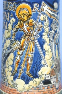 In addition to being chief patron of Upper Austria and a major patron of Poland, Saint Florian is protector against fire. He has been patron of firemen and of chimney sweeps since the 12th century. Why? One old writer explained it thus: "Stone is the result of fire's activity; a stone had weighed down the body of the Saint, but the water had conquered the stone by depositing the body on dry land. Thus water conquered fire, and Florian is protector against fires!" Austrian folklore, usually so prolific, says nothing about the martyrdom of St. Florian, but the country folk do invoke his name when they are threatened by fire or flood, and they still appeal to him in characteristic ditties such as: "Oh thou Holy Florian, spare our cottage, burn the other one!" Recent archeological work around Lorch has substantiated several details of the legend. Florian was a historical personality. At the time of the Diocletian persecution he was director of government offices in Cetium. He was martyred in 304 at Lauriacum by being drowned in the Enns river. Devotion to him has always flourished in Austria and Poland." ![]() But how and why does Saint Florian find his image etched onto a beer stein? The answer also gives meaning to the mysterious inscription on Mettlach stein number 1786, "We are beginning the second dousing." Not only is Florian the official patron of Upper Austria, Poland, and of firemen and chimney sweeps, he is also the unofficial patron of beer drinkers! The "second dousing" can refer only to dousing the fires that occur in the throat! Could there be any better way, other than with a Mettlach stein etched with the likeness of St. Florian, filled with a German brew, and with the owner's own hand squeezing the life from the fire-breathing dragon? Help, O Florian! Keep the burning flames from our throats! Thank you for research assistance to the St. Florian Catholic Church in Milwaukee. |