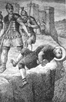 Saint Florian and His Second Dousing of the Flames Mettlach stein number 1786, the St. Florian stein, is one of the most beautiful and skillfully crafted, etched and glazed steins produced by Villeroy & Boch during its "Golden Era", with artistry attributed to Otto Hupp. The stein first appears in the 1899 Mettlach Catalog, though the one upon which this article is based is dated 1896. It is ? liter, and measures 22 cm., though it is also found in the 1 liter size, measuring 28 cm. This incomparable stein features a grotesque fire-breathing dragon handle, clawing its way up the rear of the stein and over the pewter lid, fashioned as a tiled rooftop. The ferocious creature has set fire to the village featured on the body of the stein. Flames and smoke leap through windows and across roofs, threatening the steepled church. Through the smoke and hovering above the disaster, Saint Florian appears and rescues the village. Florian is dressed in Roman military garb, holding the Flag of The Church atop of his spear in his left hand and dousing the fires from a bucket held in his right. The inscription reads: Hilf Du Heil'ger Florian. Wir Fanger 'S Zweite Loeschen An. which translates as "Help, O Holy Florian. We are beginning the second dousing. The second dousing? What could that possibly mean. Wouldn't one dousing of the fires from the hands of a capable saint be more than adequate? Obviously there is a double meaning behind both the inscription and the saint featured on this Mettlach stein, It may not be much of a mystery for the Austrians, Germans and other Europeans, in whose countries Saint Florian is very popular. However, in the United States little is known about Florian, and few could guess the meaning behind the "second dousing". We need to go back in time to the late Roman Empire in Austria. Thanks to the research information given me by St. Florian Church in Milwaukee, we find that: "Austria as a Roman province was called Noricum. The capital of the northern portion of the province was Lauriacum, located at the confluence of the Danube and Enns rivers. Today the people call it Lorch. A large garrison of Roman soldiers lived there, and their commander was the governor of Noricum. In the early days of his reign Diocletian, the Roman emperor, had tolerated Christians, but trouble was brewing. Slowly the Christians who were serving in the Roman armies were being dismissed. The blow fell in A.D. 303 when Diocletian published his edict outlawing Christianity. Churches were to be destroyed, religious assemblies were forbidden, religious books were to be burned, stubborn Christians were to be hunted down and executed. The persecution did not stop at the ancient gates of Rome - it quickly spread to the provinces. The zealous governor of Noricum, intent on ingratiating himself with the emperor, was quick to enforce the imperial edict. He ferreted out the Christians who were enrolled in the army and had them thrown into prison to await execution. In the little town of Cetium, today called St. Pölten, just west of Vienna, the director of government agencies was named Florian. This man, a soldier by profession, was an Austrian despite the fact he had a Roman name. When he heard of the persecution and the arrest of his fellow officers in Lauriacum, Florian felt that his place was with his friends. He left Cetium and began the trip to the provincial capital.