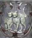 shank. The cats encircling the body provide a visual pun, as the word Kater