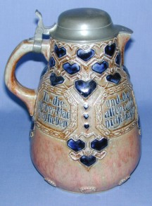 There are numerous aspects of the design of this stein which place it in the Jugendstil