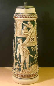August Lewald recognized this trend in 1835 when writing about a journey through the Tuxer Valley, he mentioned that its few inhabitants were exceedingly strong and particularly good marksmen, with the result that marksmen and enthusiastic hunters throughout Tyrol copied the Tuxer style. Their tighter and shorter costume was more picturesque, he said, and left the chest, knee and calf bare. Similar claims might be made for costumes of the Styrian and Upper Bavarian foresters. They convey an air of mountain romanticism to both wearer and beholder, an image of ruggedness, youthful strength and virile courage. The elaborately decorated short trousers, which combine all these attributes, thus acquire a new status over any other trousers, becoming almost a philosophy of life. Actually the short Lederhosen were in danger of being supplanted by urban-style long trousers and suits less than a hundred years ago. Whereas pantaloons became the middleclass Empire and Biedermeier fashion in the aftermath of the French Revolution, the influence of military dress on the grey loden trousers and the green-faced loden coat were consciously propagated by the high nobility. Archduke Johann himself said that he wanted to set an example of simplicity with this style. The Styrian ironmasters, whose costume he adopted, duly became his most faithful followers. In Bavaria, King Maximilian II considered the cultivation of national dress a contributing factor in the establishment of a national identity. He consequently adopted that garb when making a trip to the mountains. The new fashion spread like a disease to the peasant population and the men began to neglect their short leather trousers. One man tried to remedy this situation. When the disappearance of the Lederhosen was being bemoaned in a Bayrischzell tavern, the teacher Joseph Vogl challenged his five companions to go and have proper leather trousers made. The date was August 25, 1883, a date that was to go down in Bavarian history. The five companions agreed and on the very next Sunday proceeded to Miesbach together with the teacher to be fitted for Upper Bavarian Lederhosen by the master leatherworker Dilger. Their first public appearance, however, was anything but a success. When the young people proudly paraded their new acquisitions in church, they were met with opprobrium and derision. Until then, short Lederhosen had been the working garb of the forester and were therefore considered a breach of good manners. The farmers in particular felt provoked. No surprise that the church opposed the 'short trouser brigade' and forbade their participation in procession. As late as 1913 the short trouser association were declared immoral by the Archepiscopal See of Munich. |