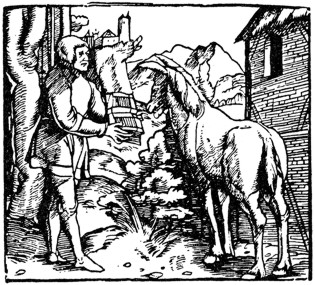 Eulenspiegel hard at work teaching a jackass to read in