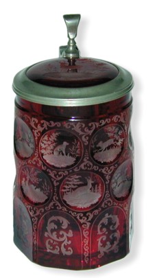 ~ A Bohemian Stained, Cut and Engraved Glass Stein ~