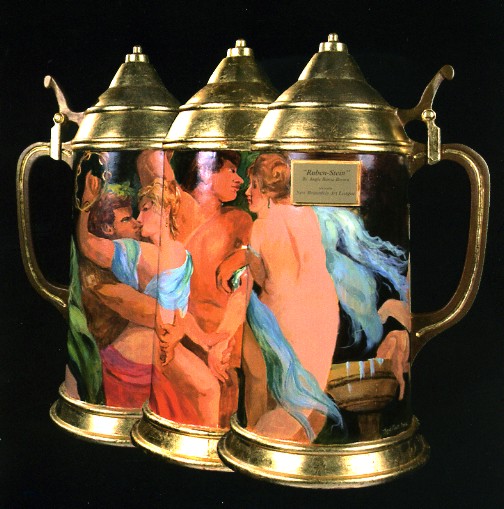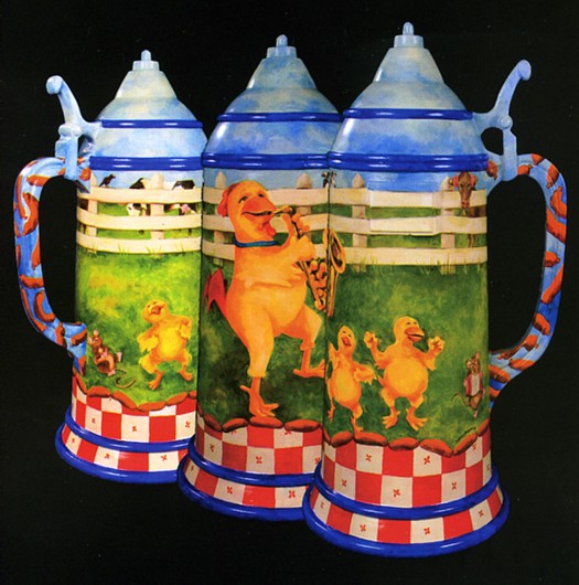 diameter, fifty pound steins. The fiber glass art steins were created very