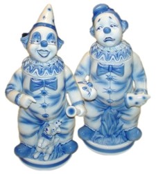 character steins, but with a contemporary appeal. I looked at old steins and new, and was finally inspired to produce the pair of clowns you see here.