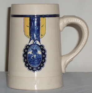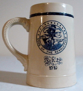 Steins are often given as souvenirs, awards or mementos of an event or occasion. This month’s stein is an example. Commissioned by the Sons of the Revolution in the State of New York and produced by Villeroy and Boch in Mettlach, Germany, it is believed that it was given to the attendees of the George Washington Birthday Ball on February 22, 1910 at Delmonico’s in midtown Manhattan.